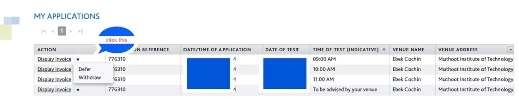 The cancellation of the venue is informed via email. Students can do Free deferral to an open test date by logging into My OET candidate profile.  Then, click on the Action column under My Application and click “defer.”